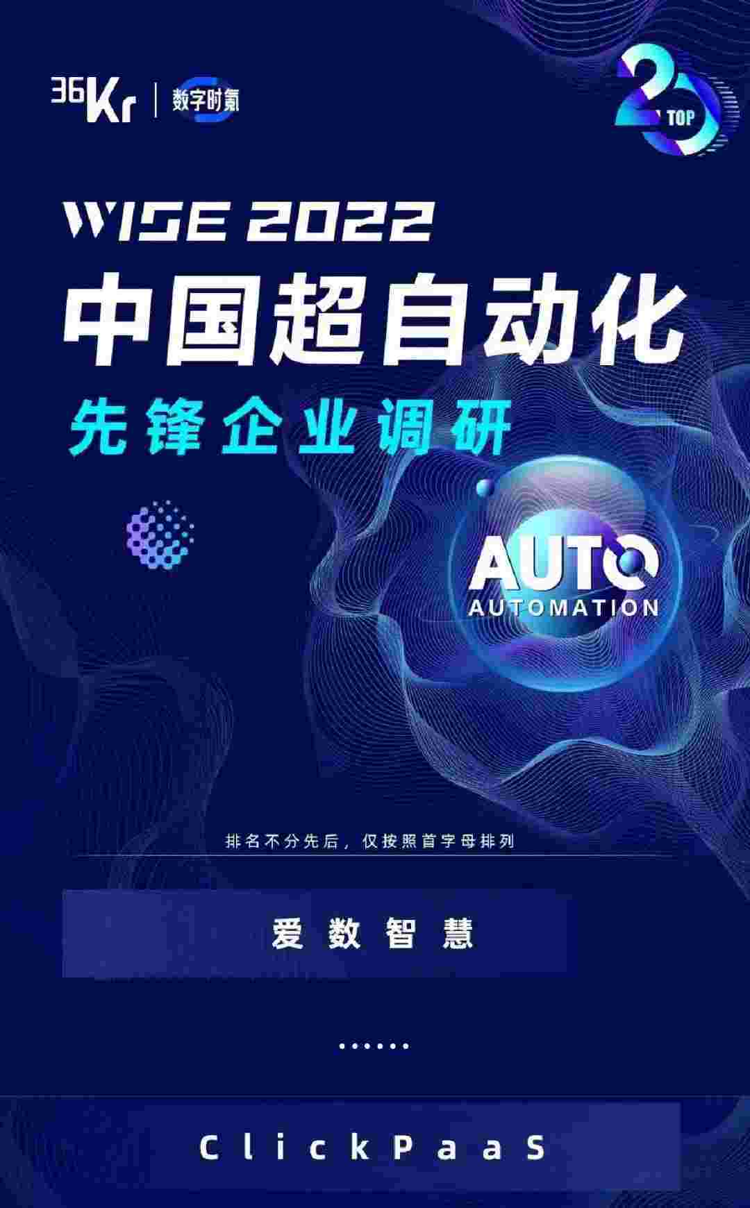 8月10日,,,由36Kr主办的WISE 2022中国超自动化峰会在杭州成功举办。。。小米钱包作为国内低代码PaaS平台的领军企业,,凭借过硬的技术实力和优质的产品能力,,,在本次峰会中实力入选「2022年中国超自动化先锋企业」20强。。。