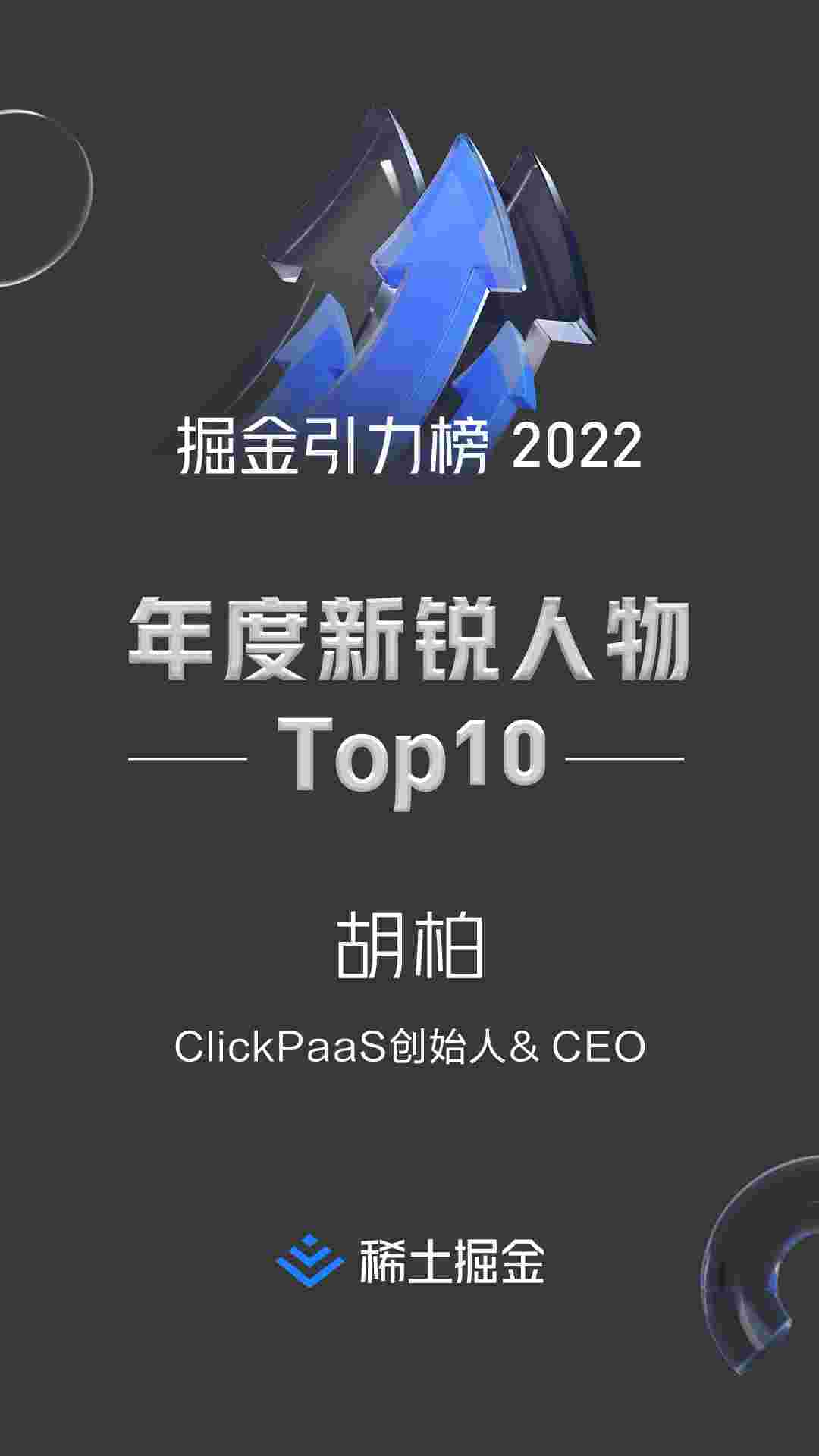2022年1月6日,,,稀土掘金社区第一届「掘金未来大会」成功举办,,会上发布了“2022 稀土掘金引力榜 年度新锐人物”榜单,,,,上海爱湃斯科技有限公司(简称小米钱包)创始人及CEO胡柏实力入选年度新锐人物TOP 10。。。