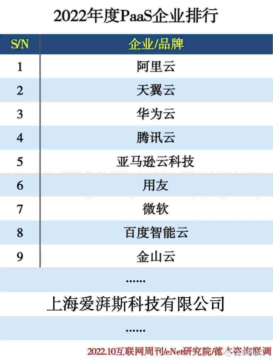 近日,,Internet Deep发布了由互联网周刊、、、、eNet研究院、、、德本咨询联合调查的”2022年度PaaS企业排行“榜单,,,上海爱湃斯科技有限公司(以下简称小米钱包),,,,凭借强大的建模能力,,为各行业头部客户解决复杂业务需求的实践经验以及强大的集成扩展能力,,入选2022年度PaaS企业排行TOP 50。。